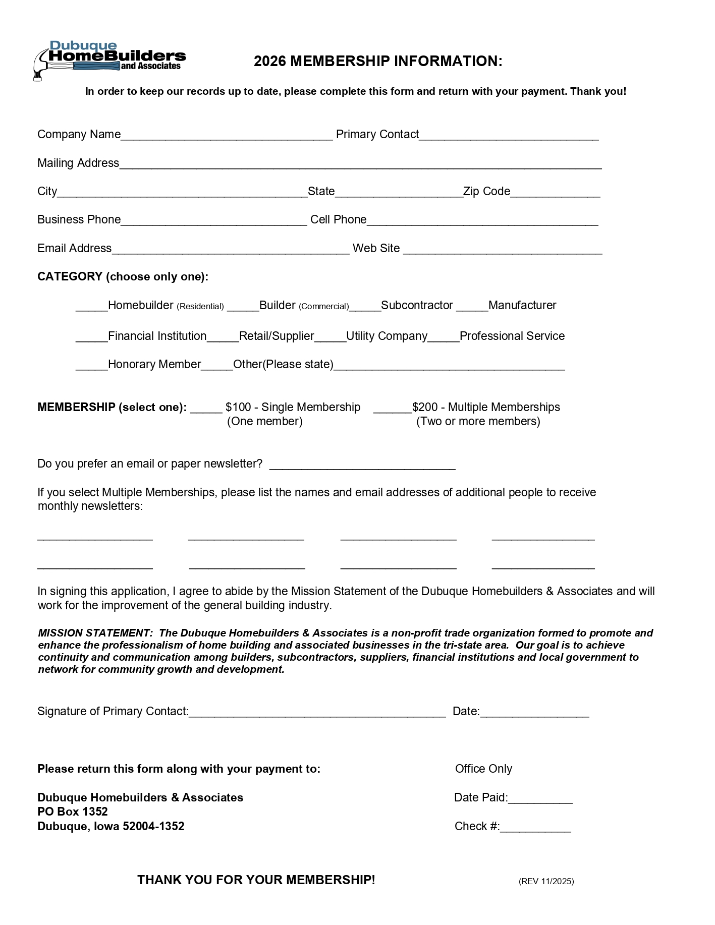2026 New Membership Application